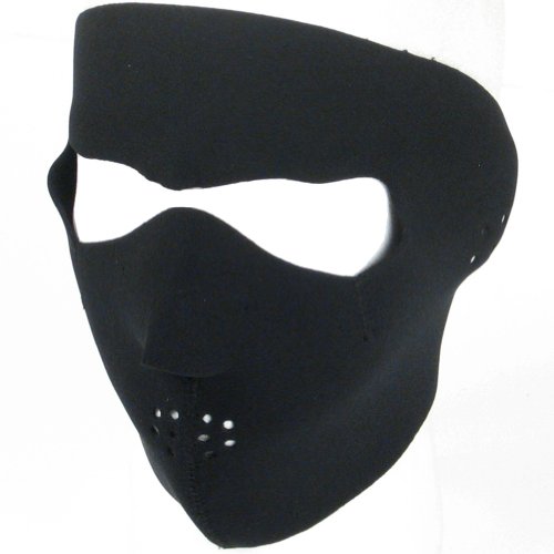 NEOPRENE WINTER FULL FACE MASK with NOSE, MOUTH and EAR VENTS This is a great mask for all climate conditions: Biking, Motorcycling, Hunting, Snowmobiling, Snowboarding, Skiing, Paintball, Construction and a host of other outdoor sports and activities. SIZE: Adult - adjustable, one size fits most. STYLE / COLOR: Basic Black We have other styles and patterns available!
